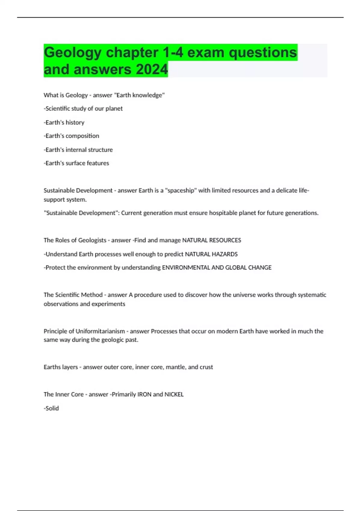 Geology chapter 1-4 exam questions and answers 2024