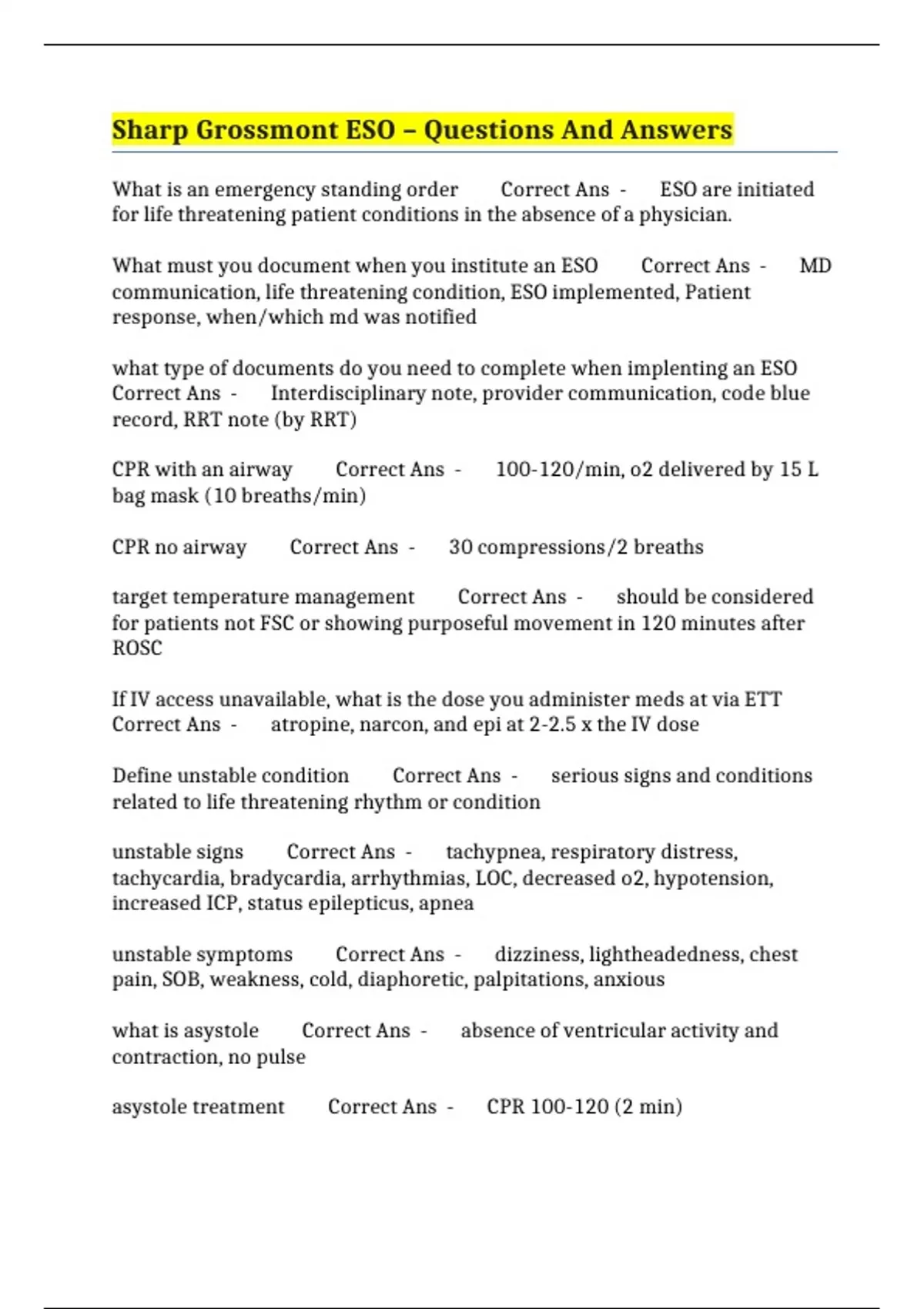 sharp grossmont eso questions and answers