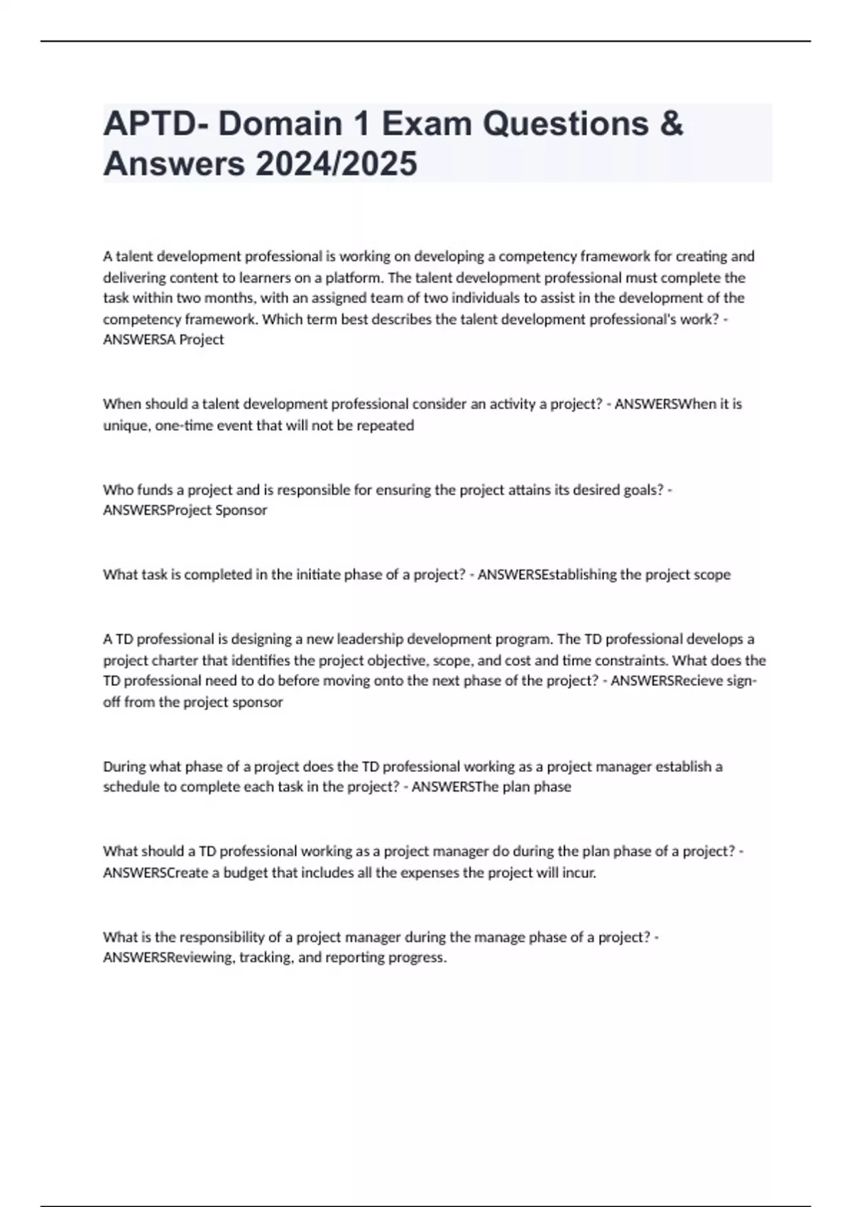 APTD- Domain 1 Exam Questions & Answers 2024/2025