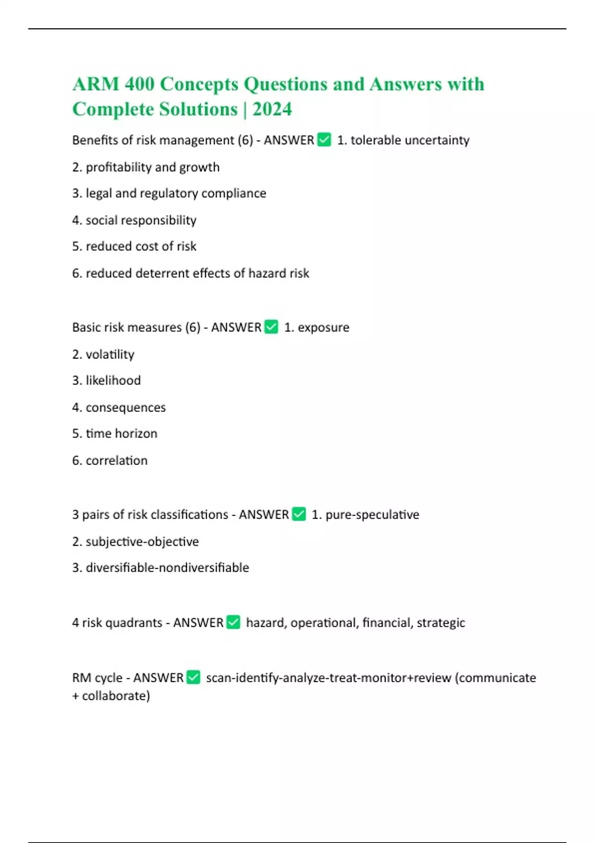 ARM 400 Concepts Questions and Answers with Complete Solutions | 2024