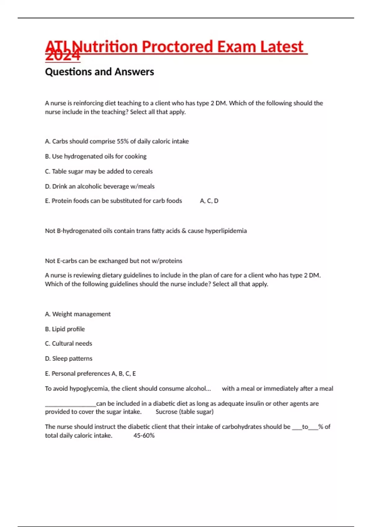 ati nutrition proctored exam latest 2024