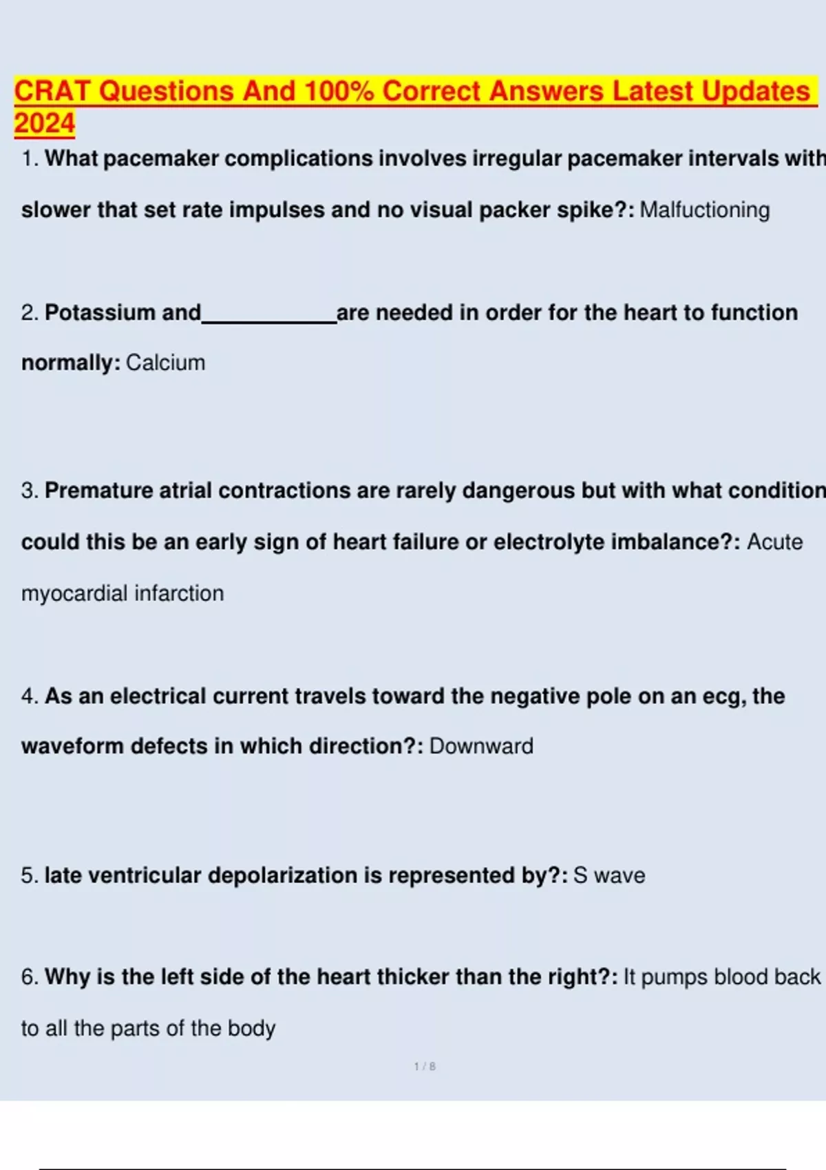 CRAT Questions And 100% Correct Answers Latest Updates 2024
