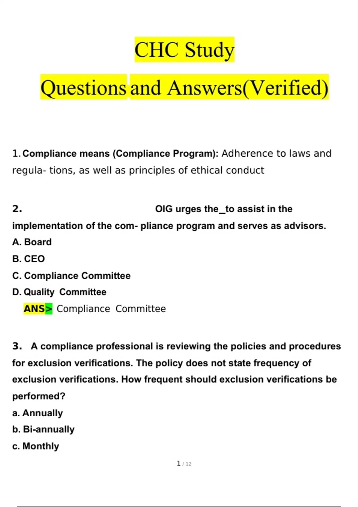 CHC Study Questions and Answers (2024 / 2025) (Verified Answers)CHC Study Questions and Answers (2024 / 2025) (Verified Answers)CHC Study Questions and Answers (2024 / 2025) (Verified Answers)CHC Study Questions and Answers (2024 / 2025) (Verified Answers)CHC Study Questions and Answers (2024 / 2025) (Verified Answers)CHC Study Questions and Answers (2024 / 2025) (Verified Answers)CHC Study Questions and Answers (2024 / 2025) (Verified Answers)