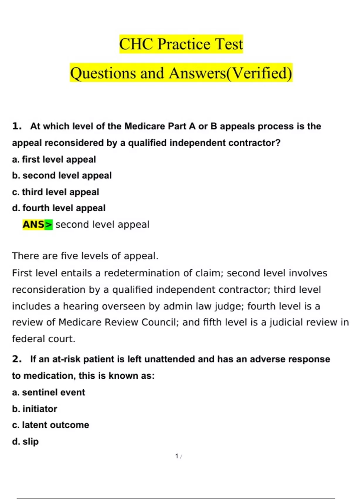 CHC Practice Test Questions and Answers (2024 / 2025) (Verified Answers)