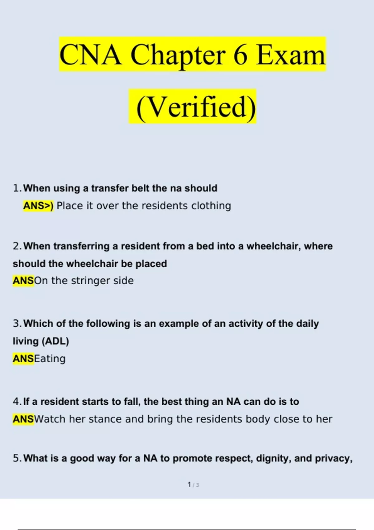 cna chapter 6 exam questions and answers 2024