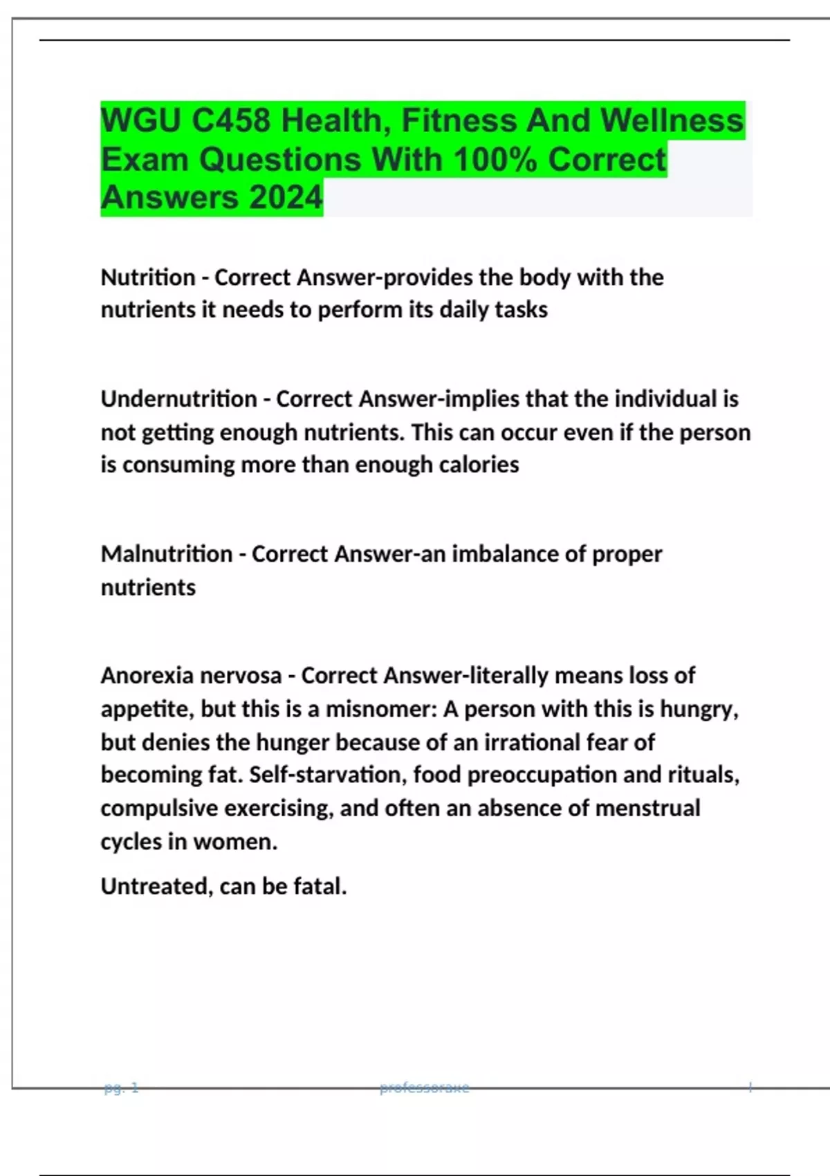 WGU C458 Health, Fitness And Wellness Exam Questions With 100% Correct Answers 2024