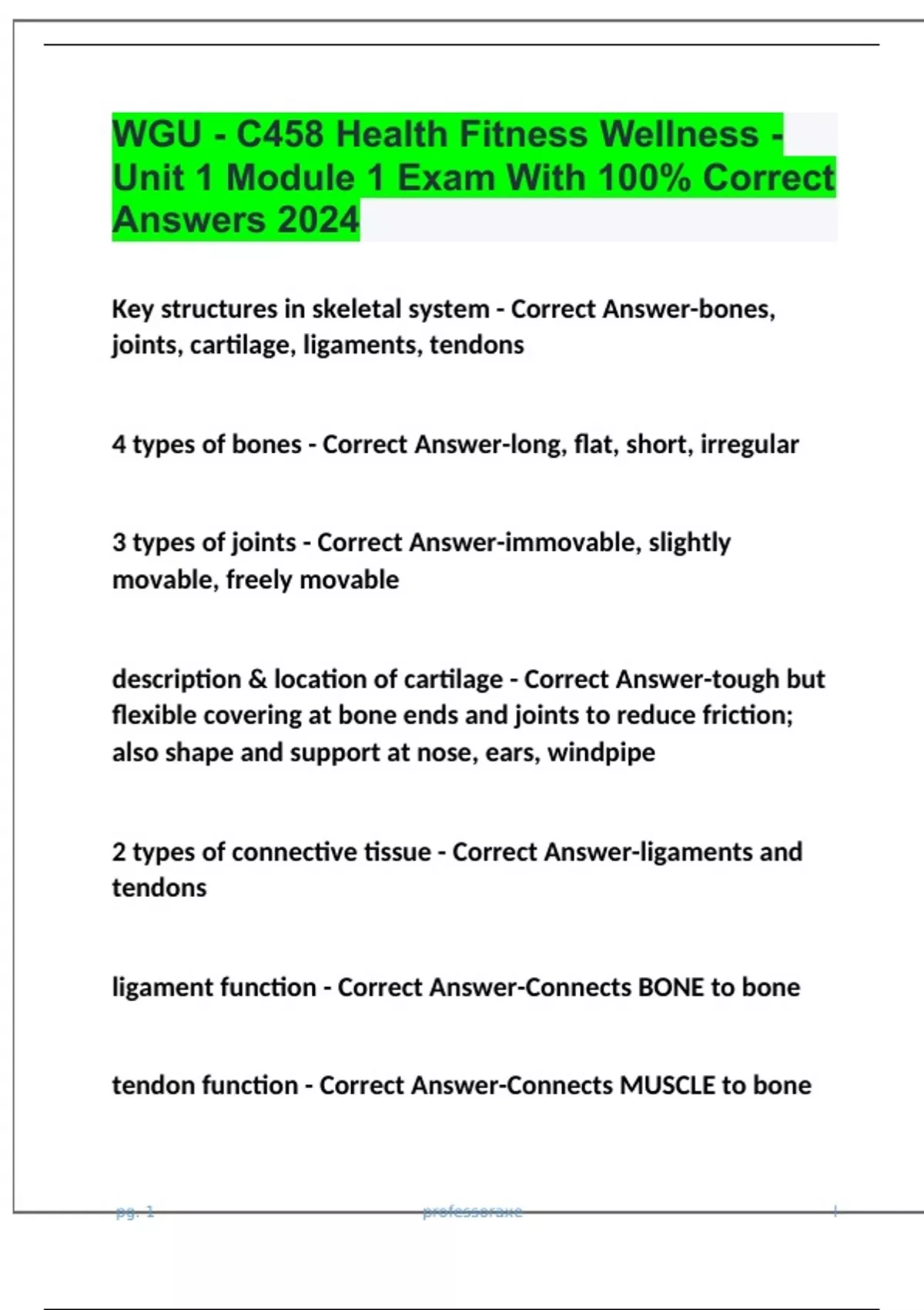 WGU - C458 Health Fitness Wellness - Unit 1 Module 1 Exam With 100% Correct Answers 2024