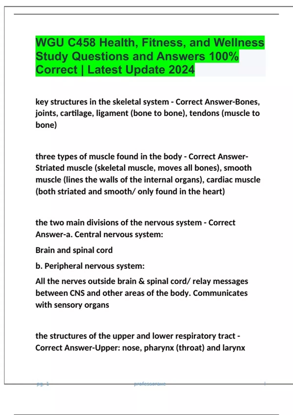 WGU C458 Health, Fitness, and Wellness Study Questions and Answers 100% Correct | Latest Update 2024