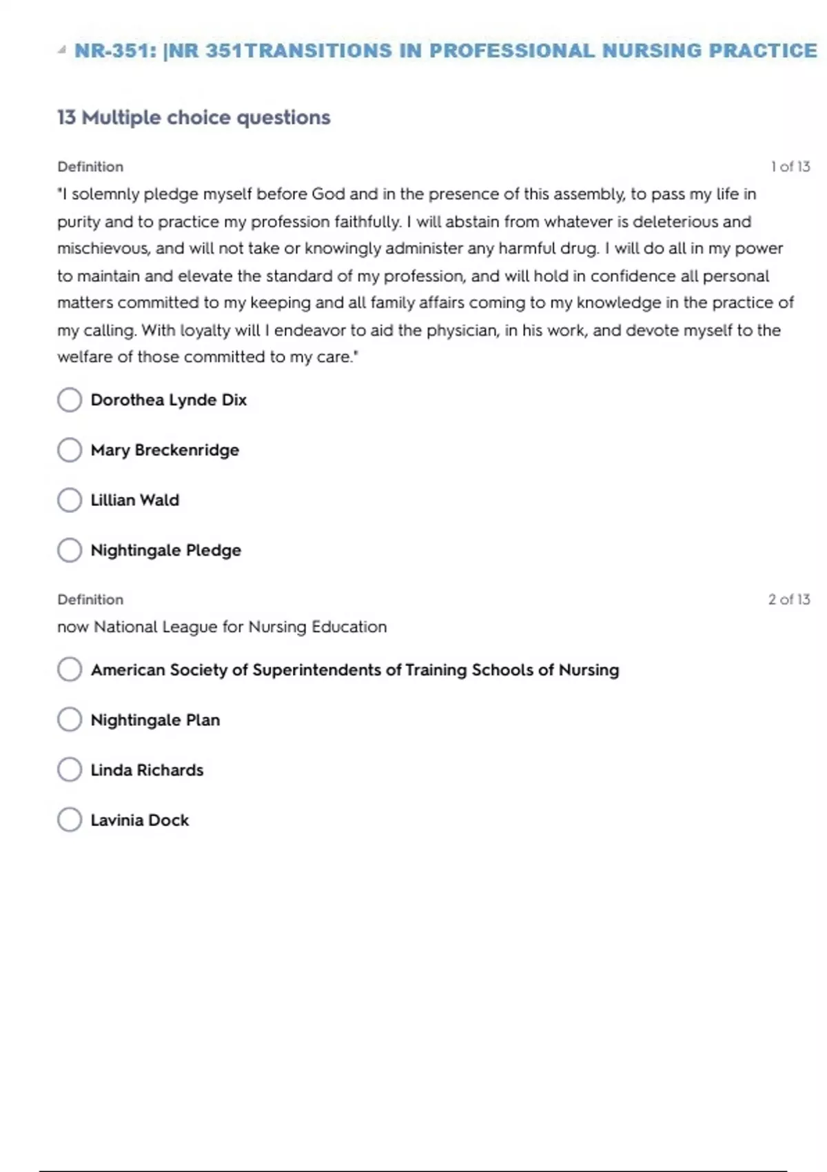 NR-351: |NR 351TRANSITIONS IN PROFESSIONAL NURSING PRACTICE SELF TEST 9 QUESTIONS WITH 100% SOLVED SOLUTIONS| VERIFIED ANSWERS