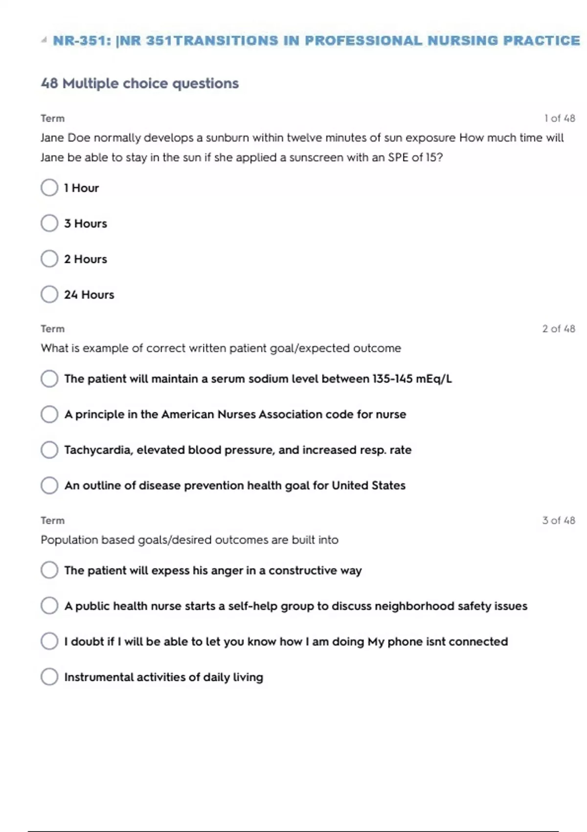 NR-351: |NR 351TRANSITIONS IN PROFESSIONAL NURSING PRACTICE SELF TEST 7 QUESTIONS WITH 100% SOLVED SOLUTIONS| VERIFIED ANSWERS