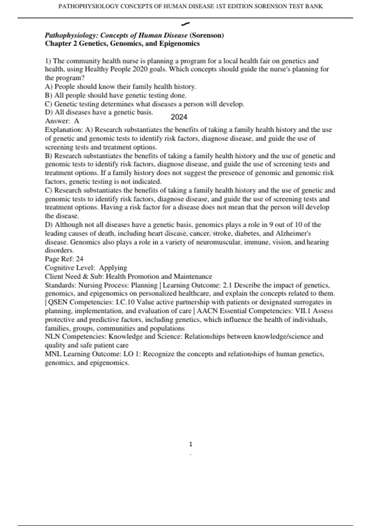 PATHOPHYSIOLOGY CONCEPTS OF HUMAN DISEASE 1ST EDITION SORENSON TEST BANK