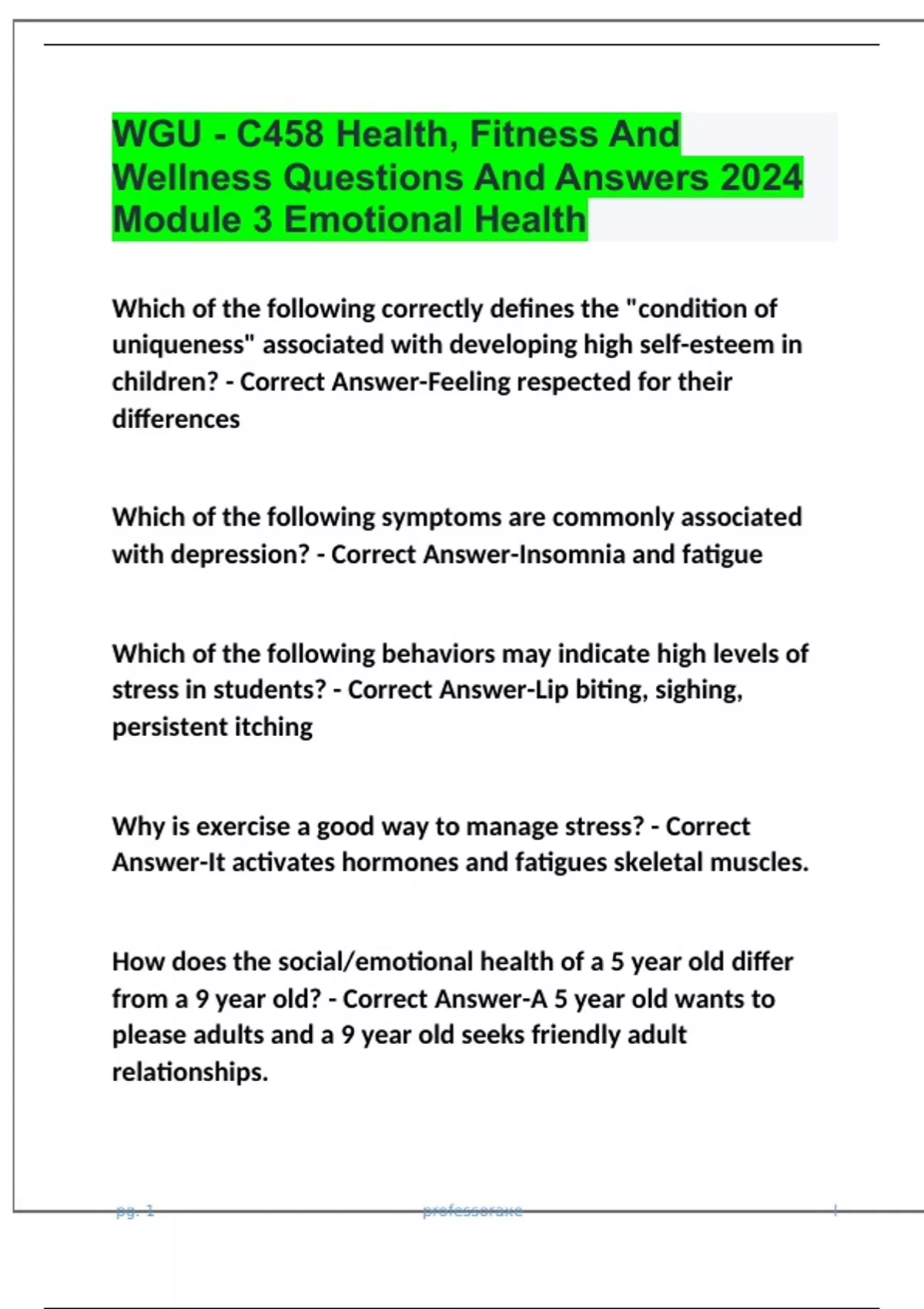 WGU - C458 Health, Fitness And Wellness Questions And Answers 2024 Module 3 Emotional Health