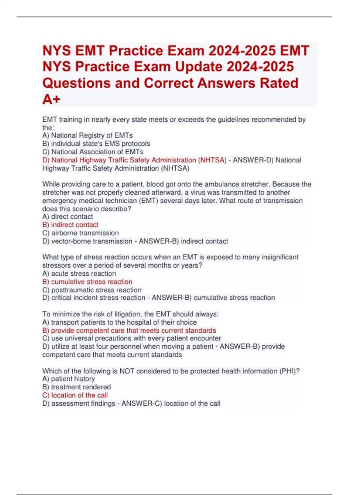 NYS EMT Practice Exam EMT NYS Practice Exam Update Questions and Correct Answers Rated A+