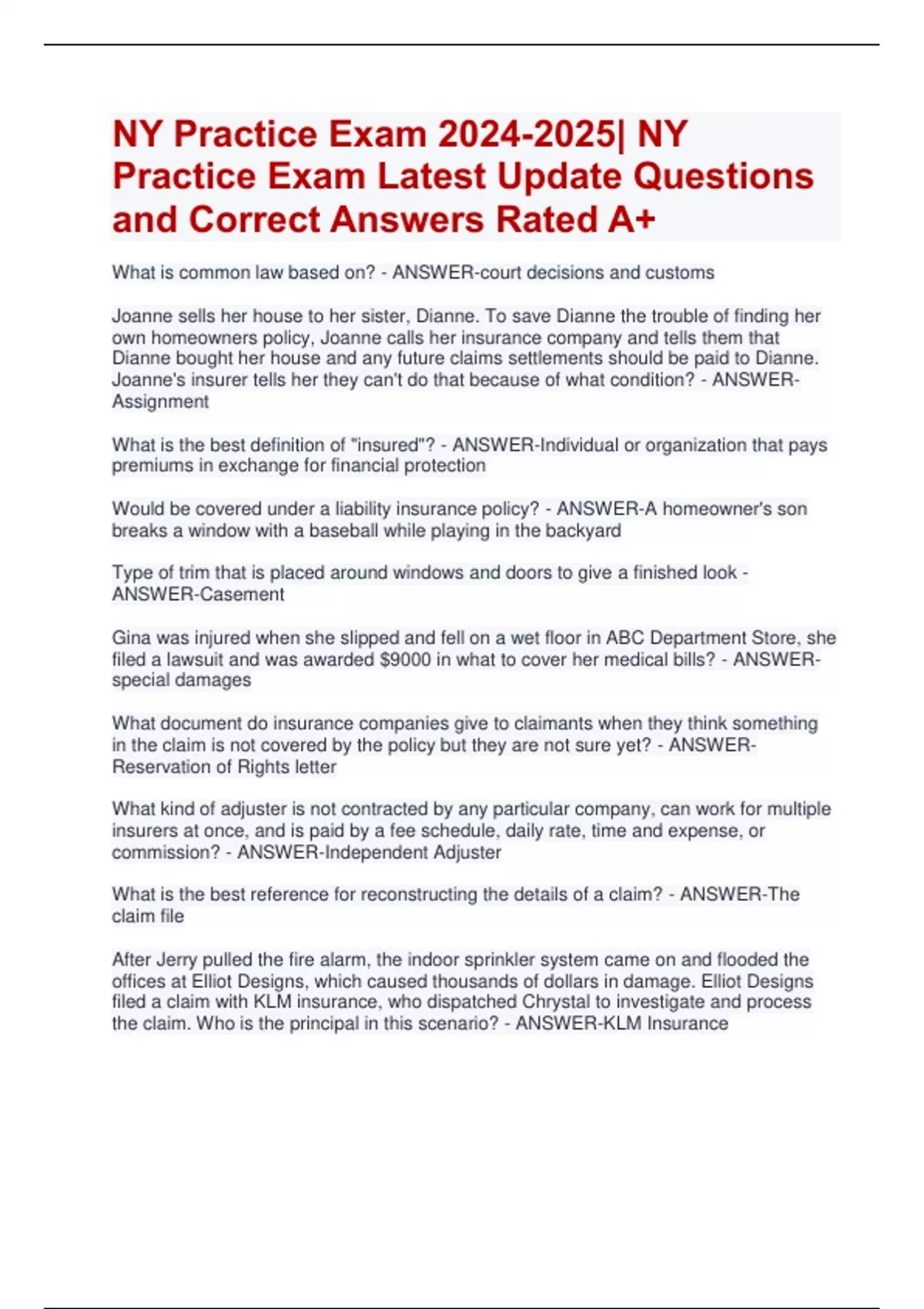 NY Practice Exam | NY Practice Exam Latest Update Questions and Correct Answers Rated A+