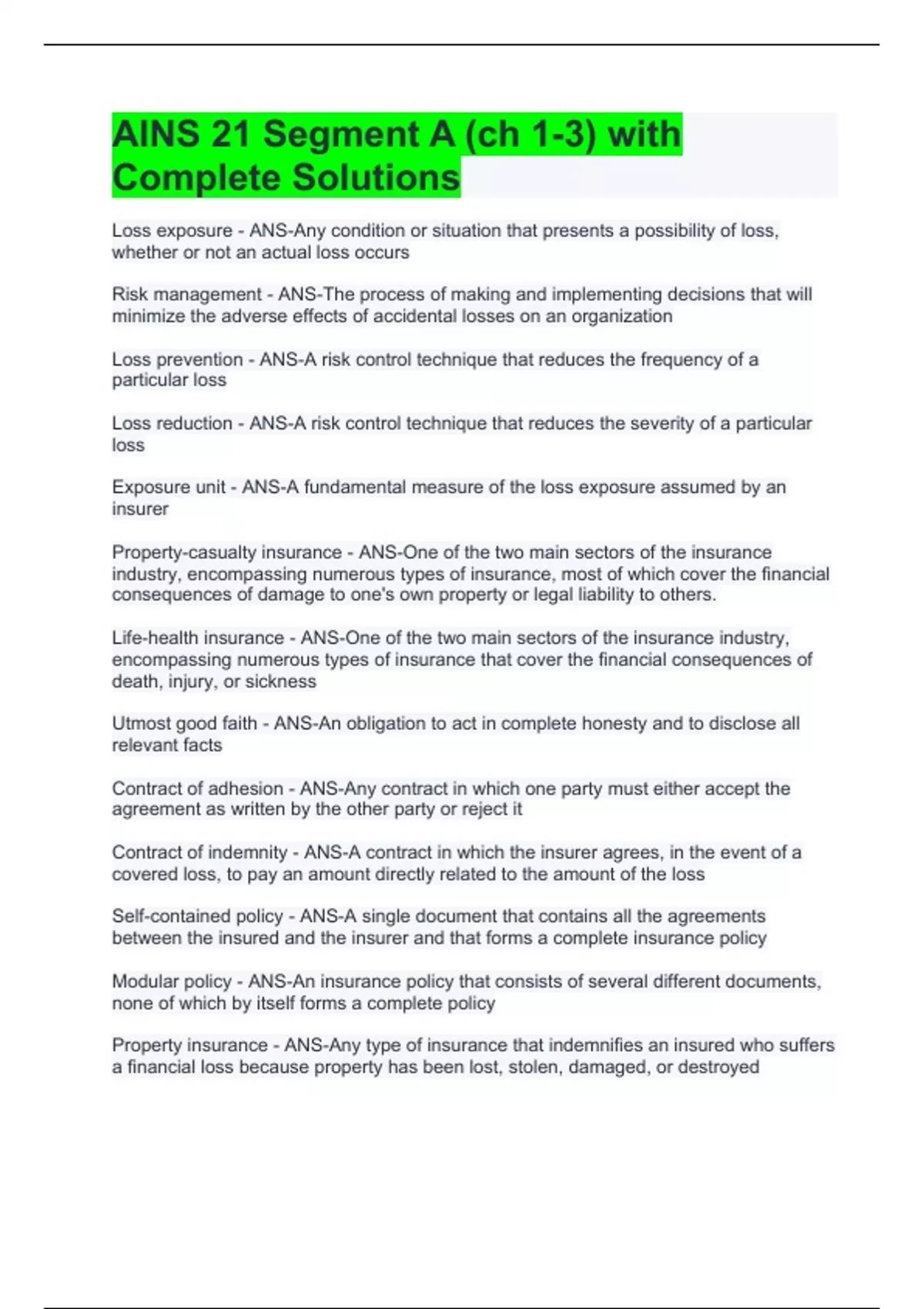 AINS 21 Segment A (ch 1-3) with Complete Solutions