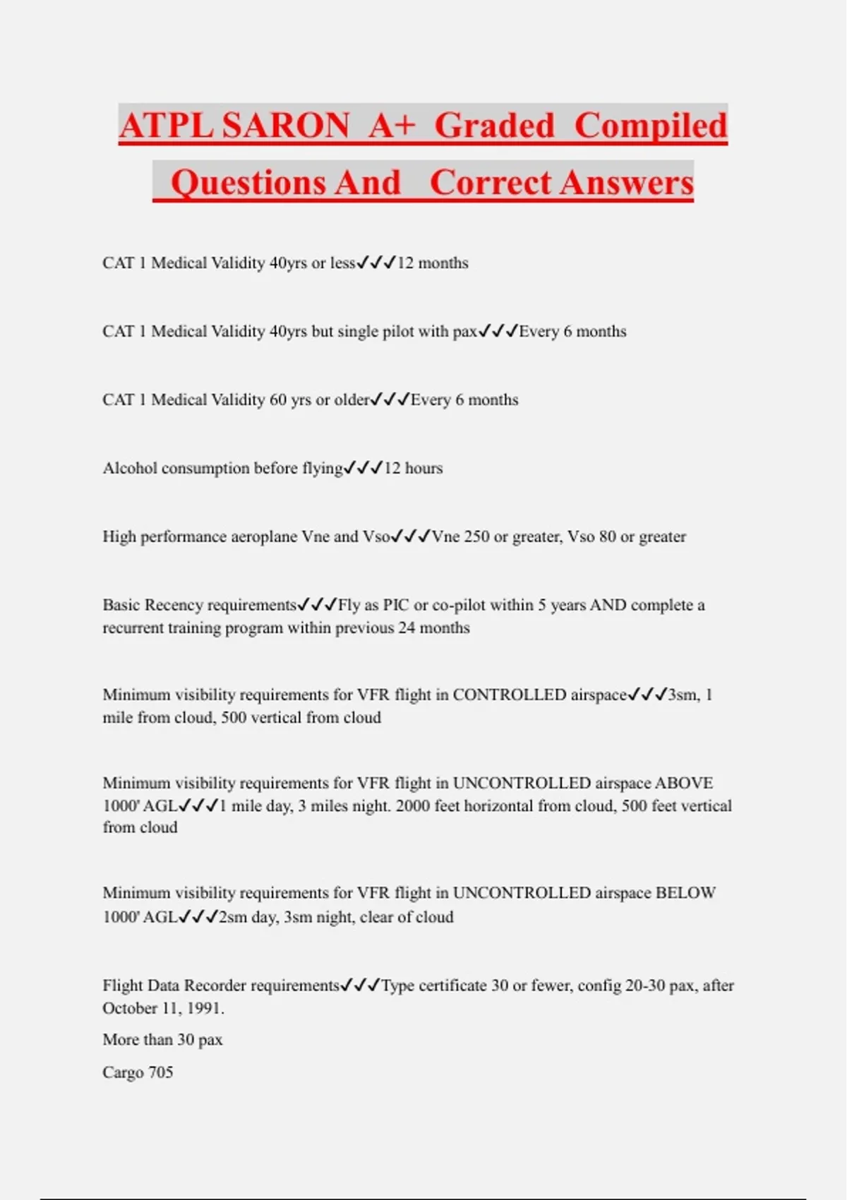 ATPL SARON A+ Graded Compiled Questions And Correct Answers