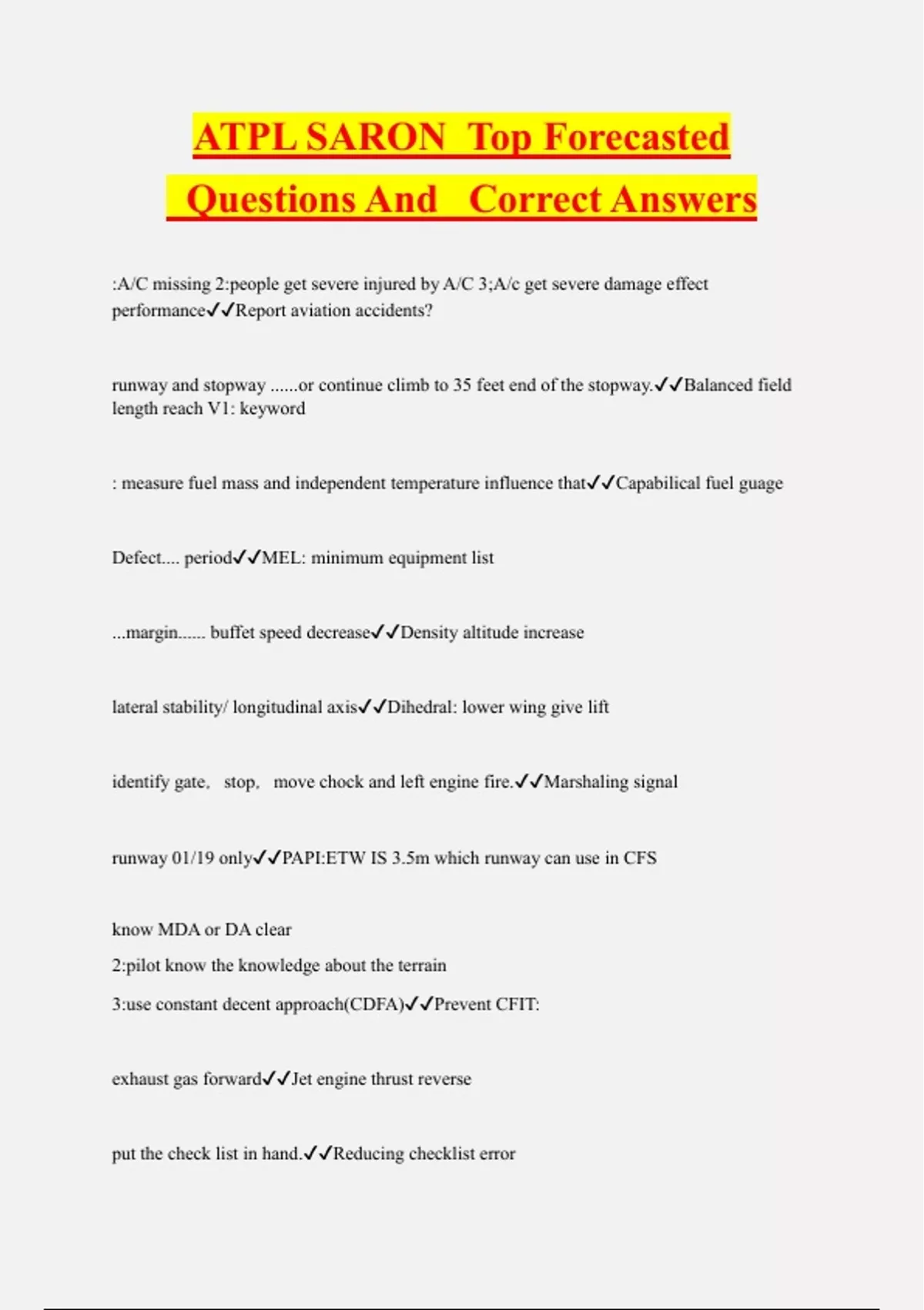 ATPL SARON Top Forecasted Questions And Correct Answers