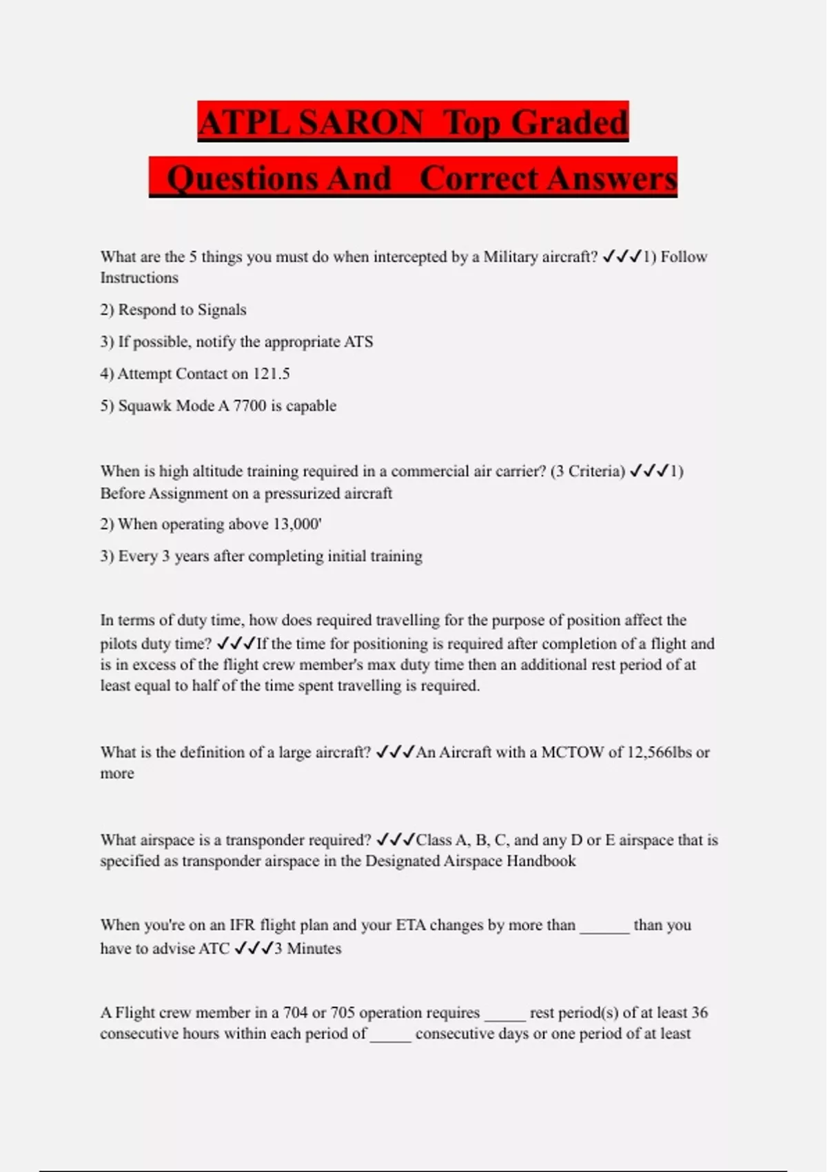 ATPL SARON Top Graded Questions And Correct Answers