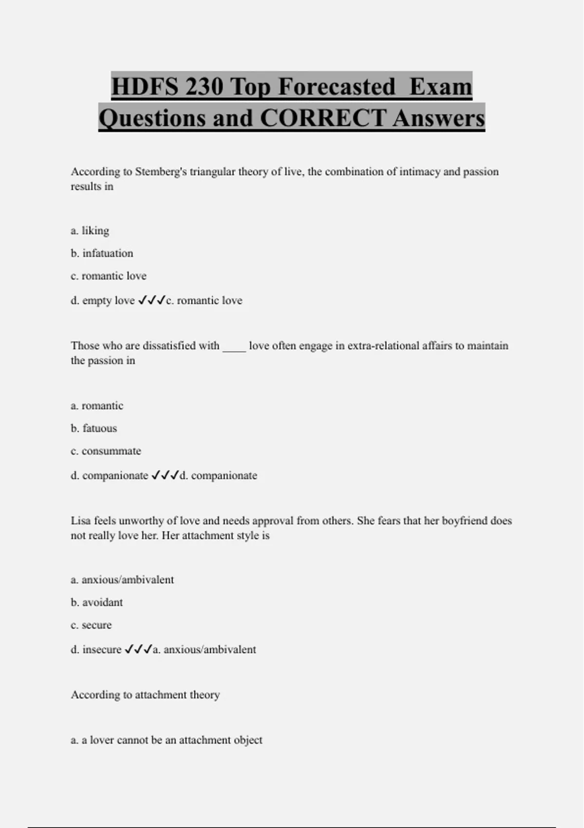 HDFS 230 Top Forecasted Exam Questions and CORRECT Answers