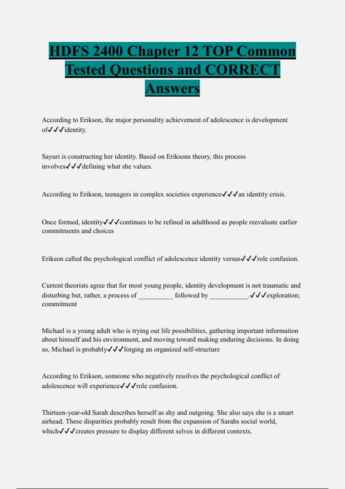 HDFS 2400 Chapter 12 TOP Common Tested Questions and CORRECT Answers