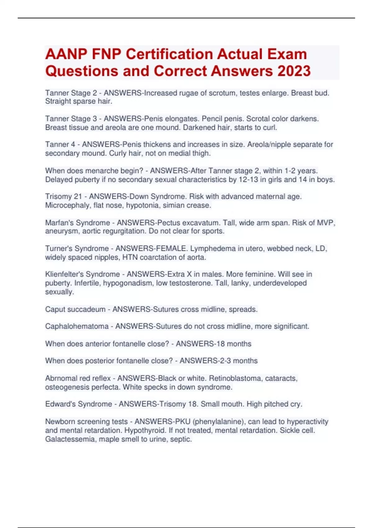 AANP FNP Certification Actual Exam Questions and Correct Answers 2023