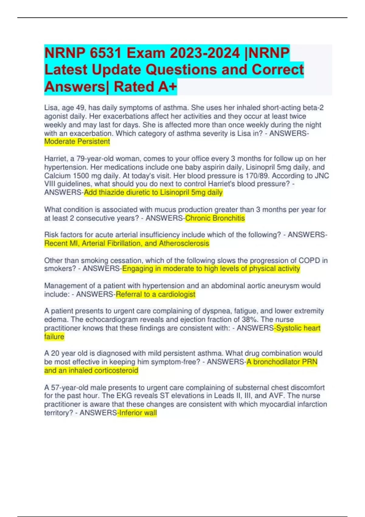 NRNP 6531 Exam 2023-2024 |NRNP