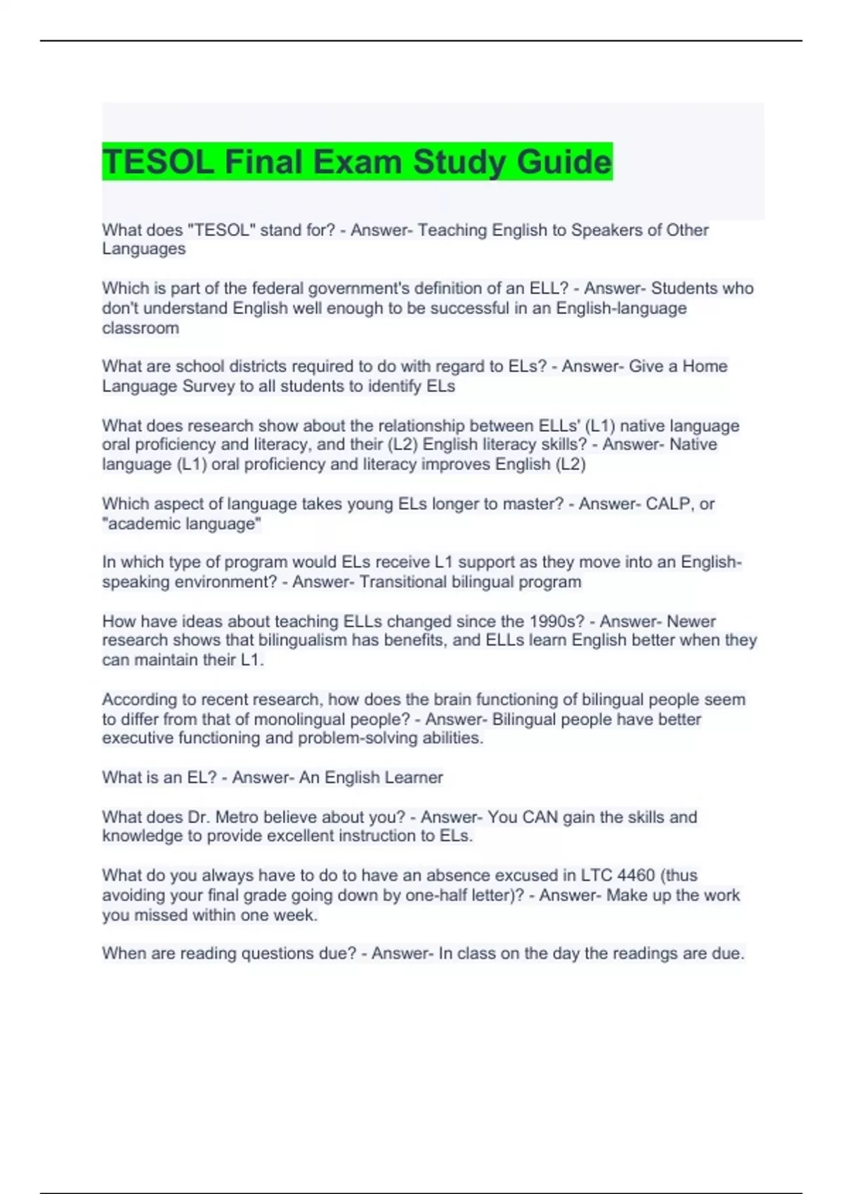 TESOL Exam Bundle (Graded A)
