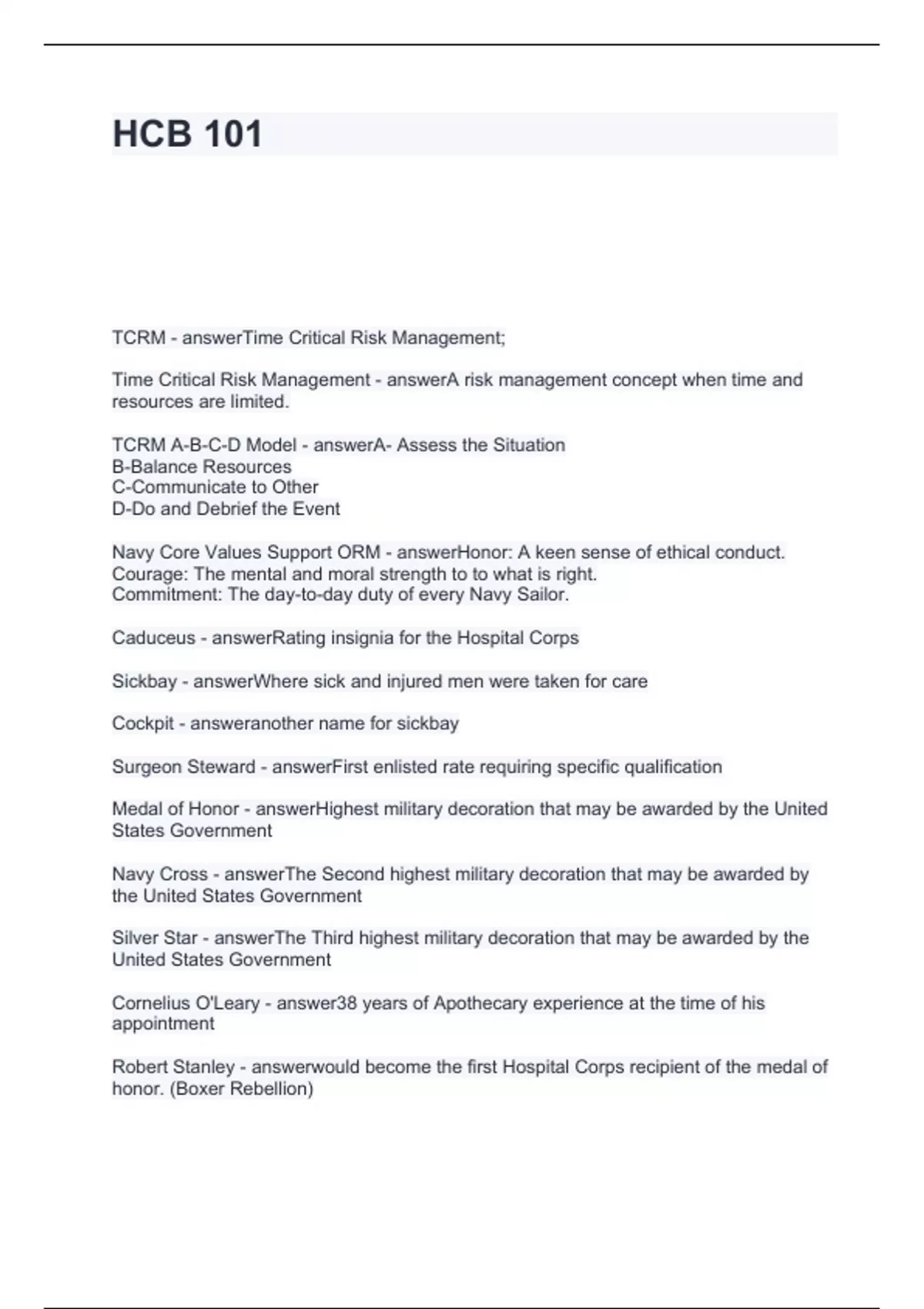 HCB 101 QUESTIONS WITH CORRECT ANSWERS 2024