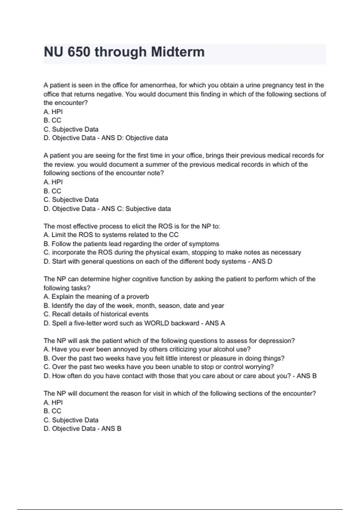NU 650 through Midterm Exam 2024/2025 Questions & Answers Already Graded A.