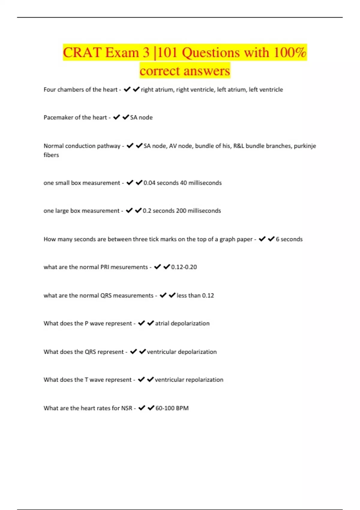 CRAT Exam 3 |101 Questions with 100% correct answers