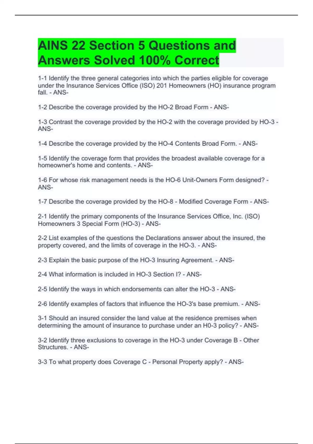 AINS 22 Section 5 Questions and Answers Solved 100% Correct