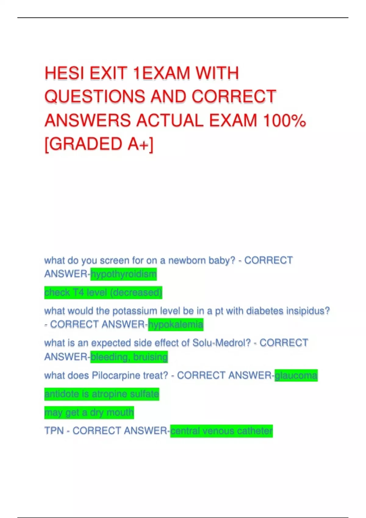 ANSWERS ACTUAL EXAM 100%