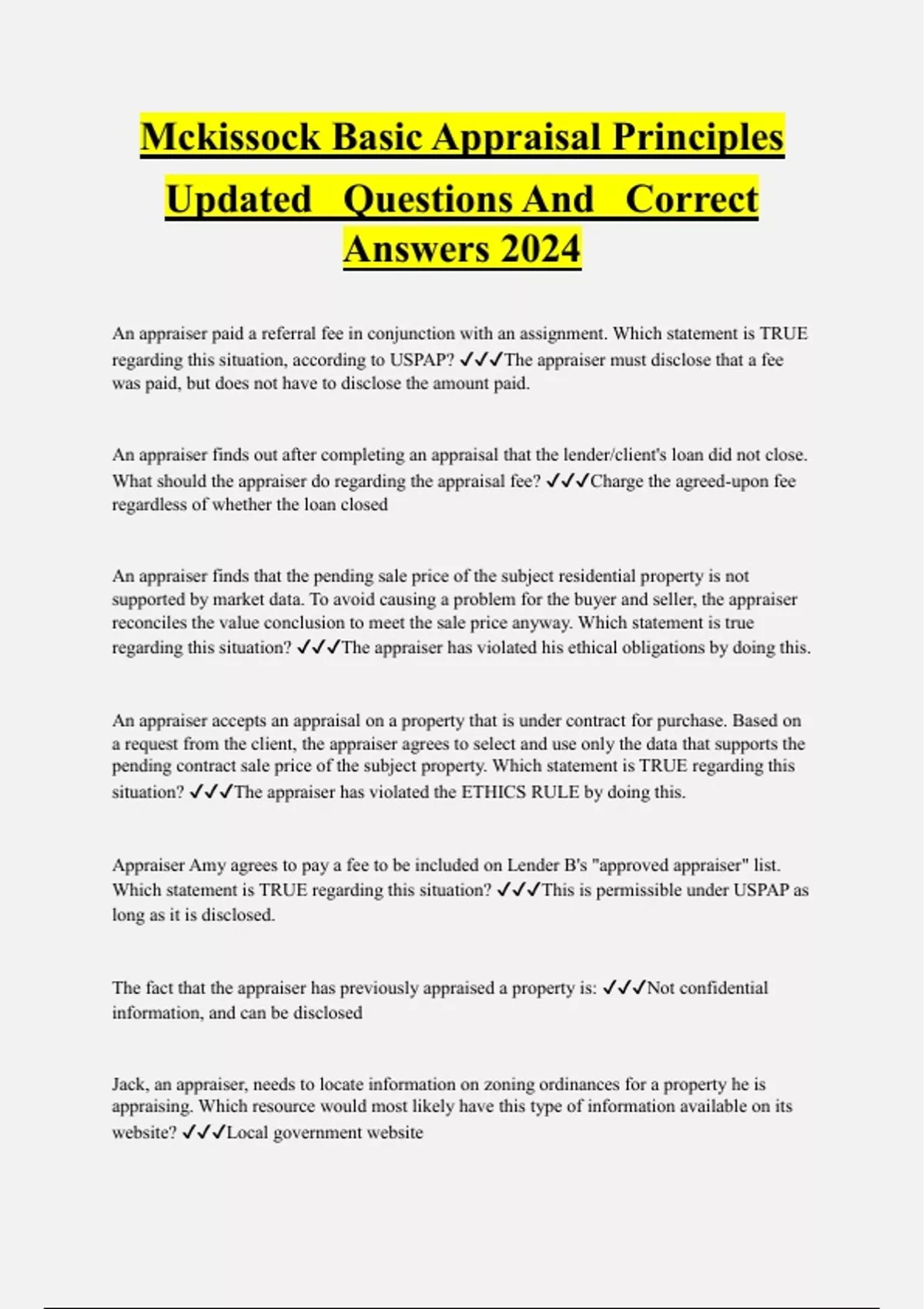 Mckissock Basic Appraisal Principles Updated Questions And Correct Answers 2024