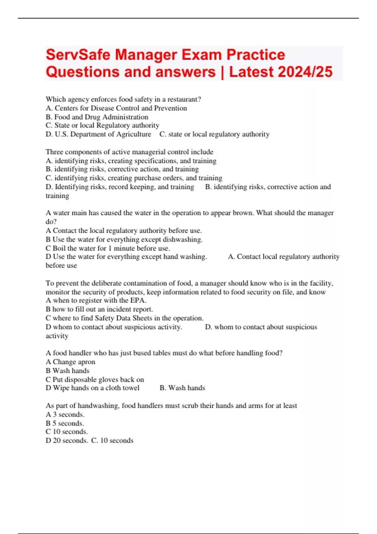 ServSafe Manager Exam Practice Questions and answers | Latest 2024/25
