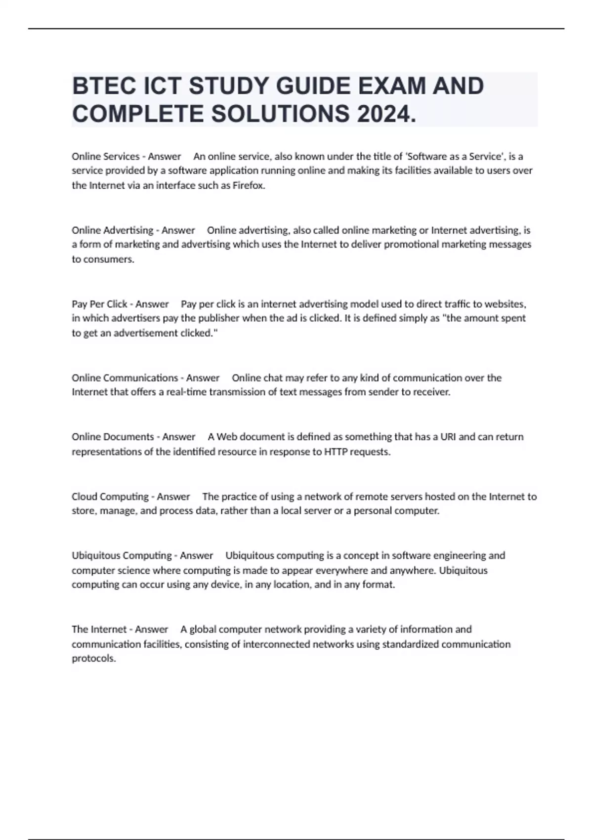 BTEC ICT STUDY GUIDE EXAM AND COMPLETE SOLUTIONS 2024