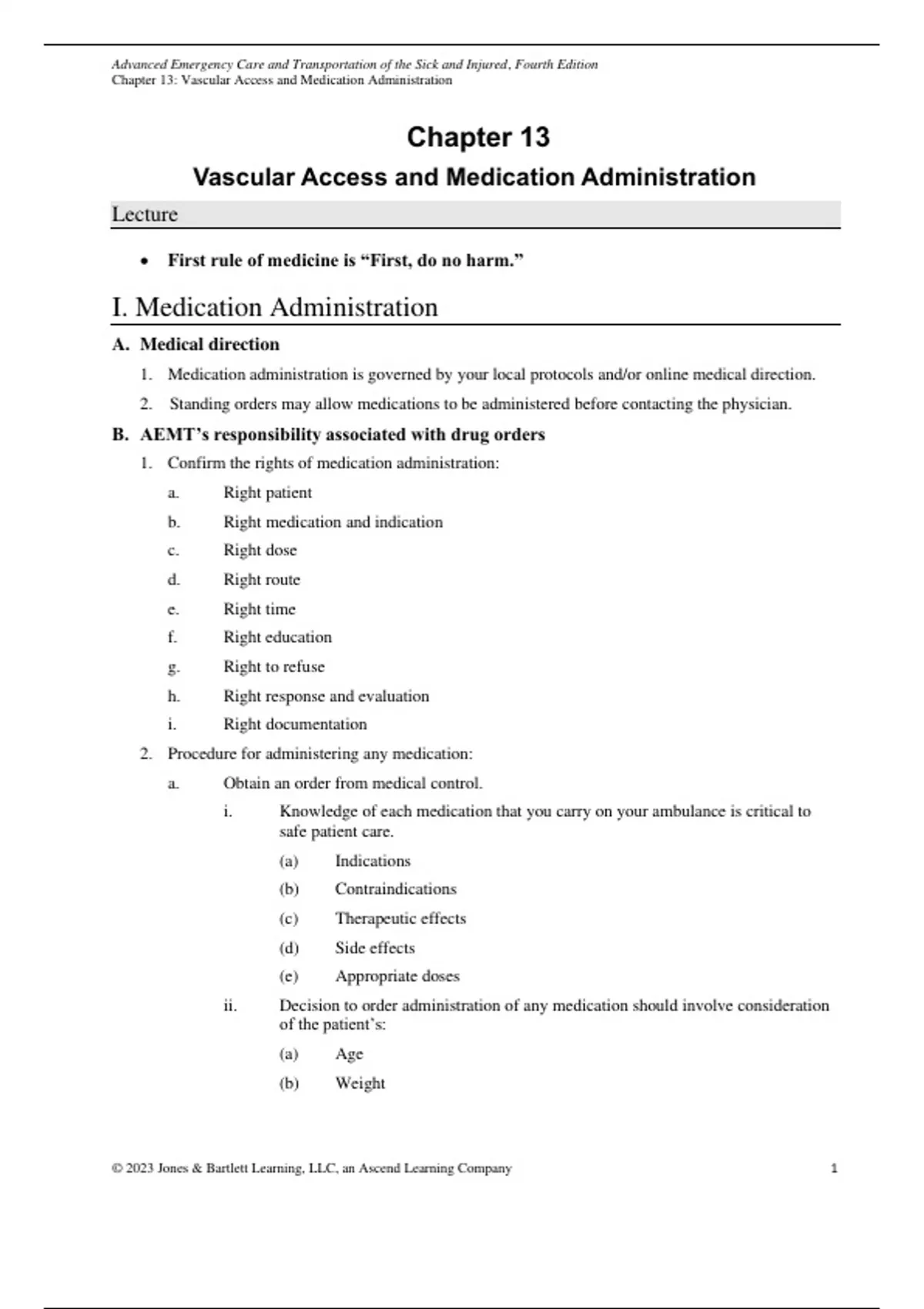 Chapter 13 - Vascular Access & Medication Administration. Learn about IVs, and IOs in this lecture notes set.