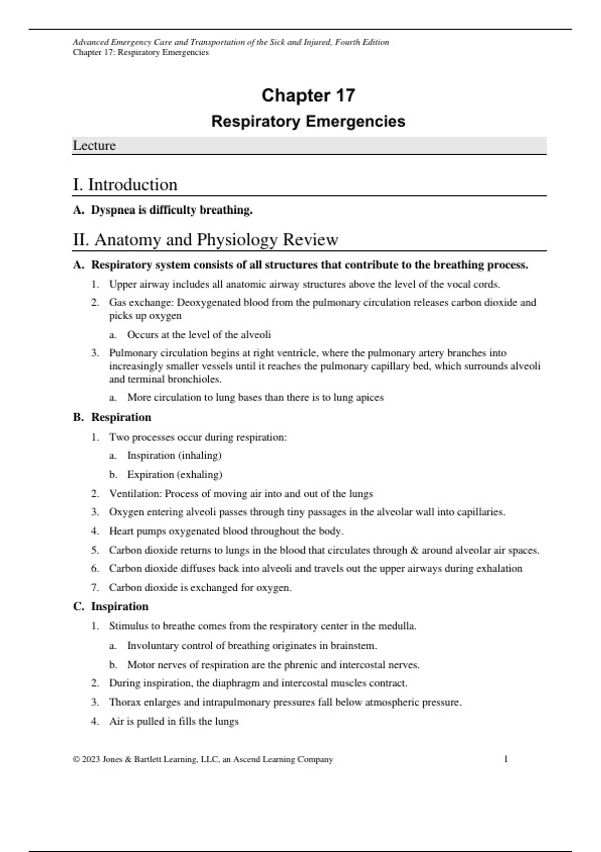 AEMT Chapter 17 - Respiratory Emergencies