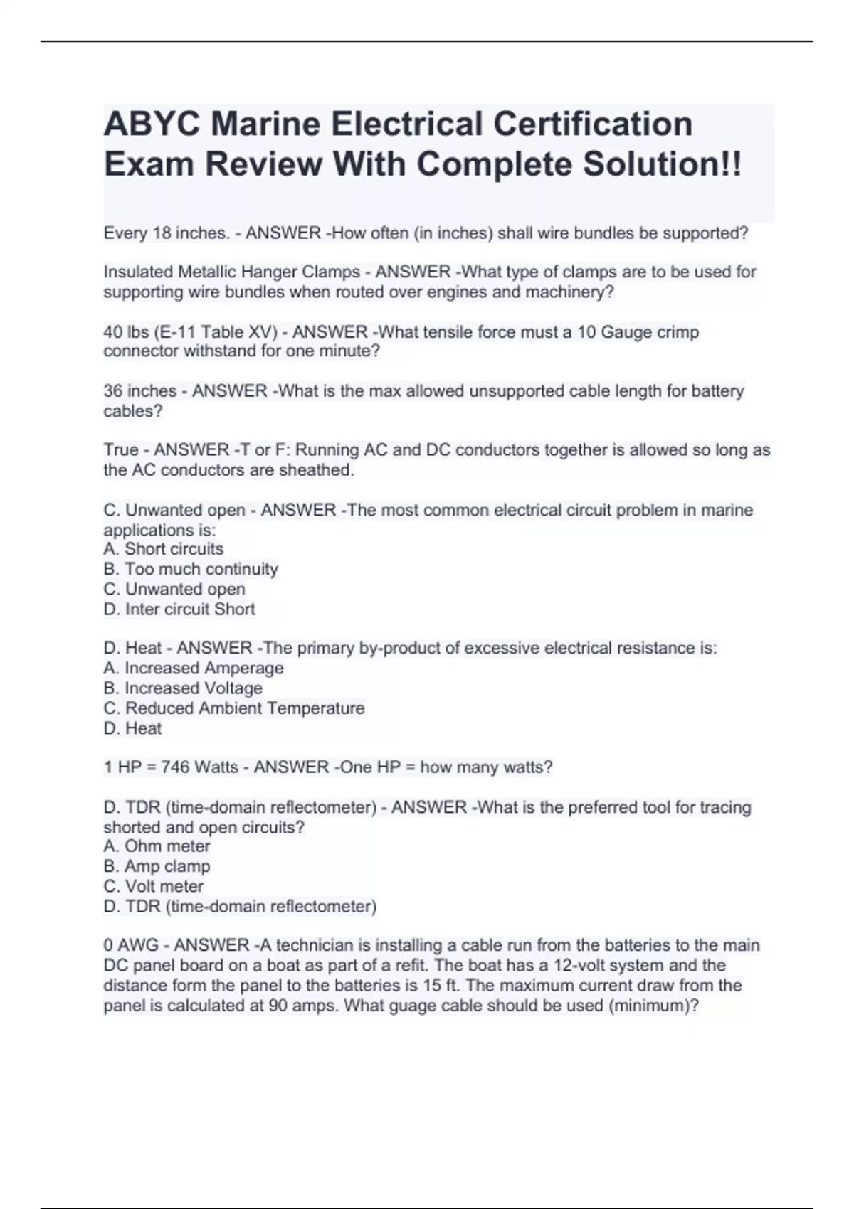 ABYC Marine Electrical Certification Exam Review With Complete Solution!!
