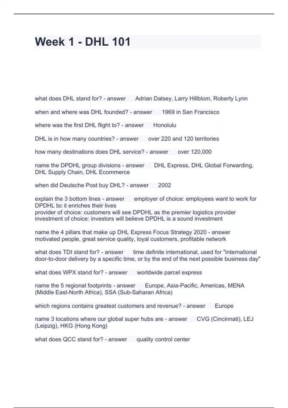 Week 1 - DHL 101 Questions with Accurate Answers 2024