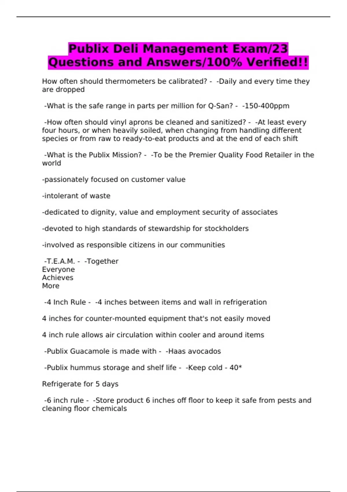 Publix Deli Management Exam/23 Questions and Answers/100% Verified!!
