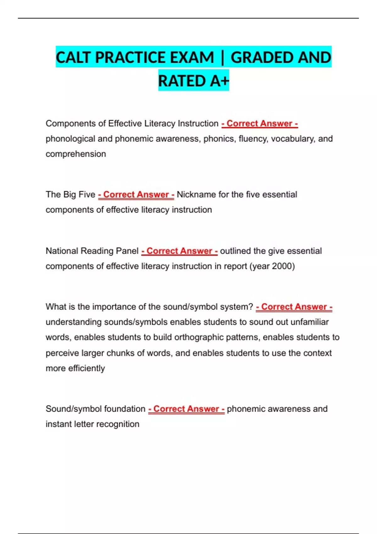 CALT PRACTICE EXAM | GRADED AND RATED A+ Latest 2024