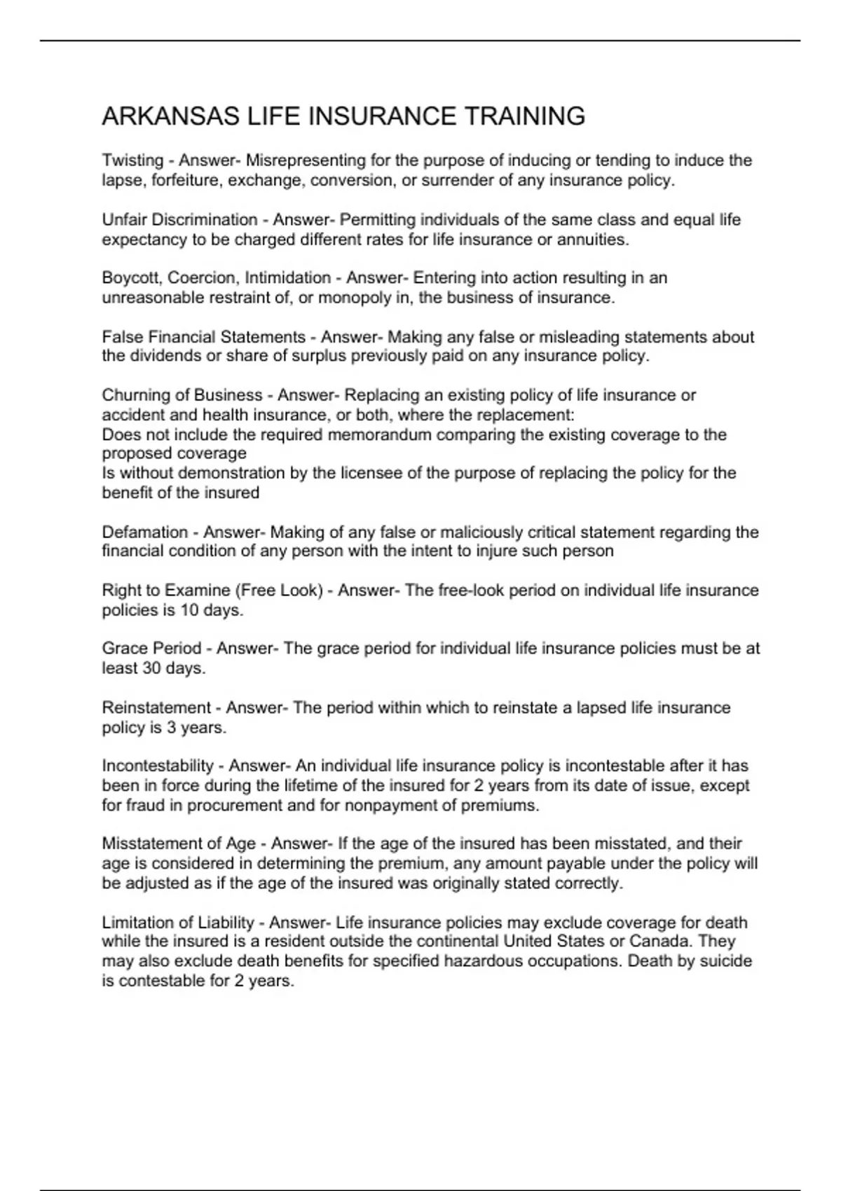ARKANSAS LIFE INSURANCE TRAINING