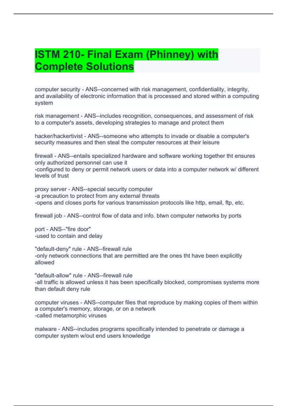 ISTM 210- Final Exam (Phinney) with Complete Solutions