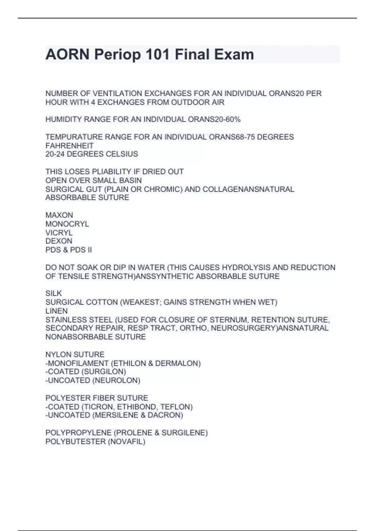 AORN Periop 101 Final Exam Questions and Answers 2024 Lastest Edition