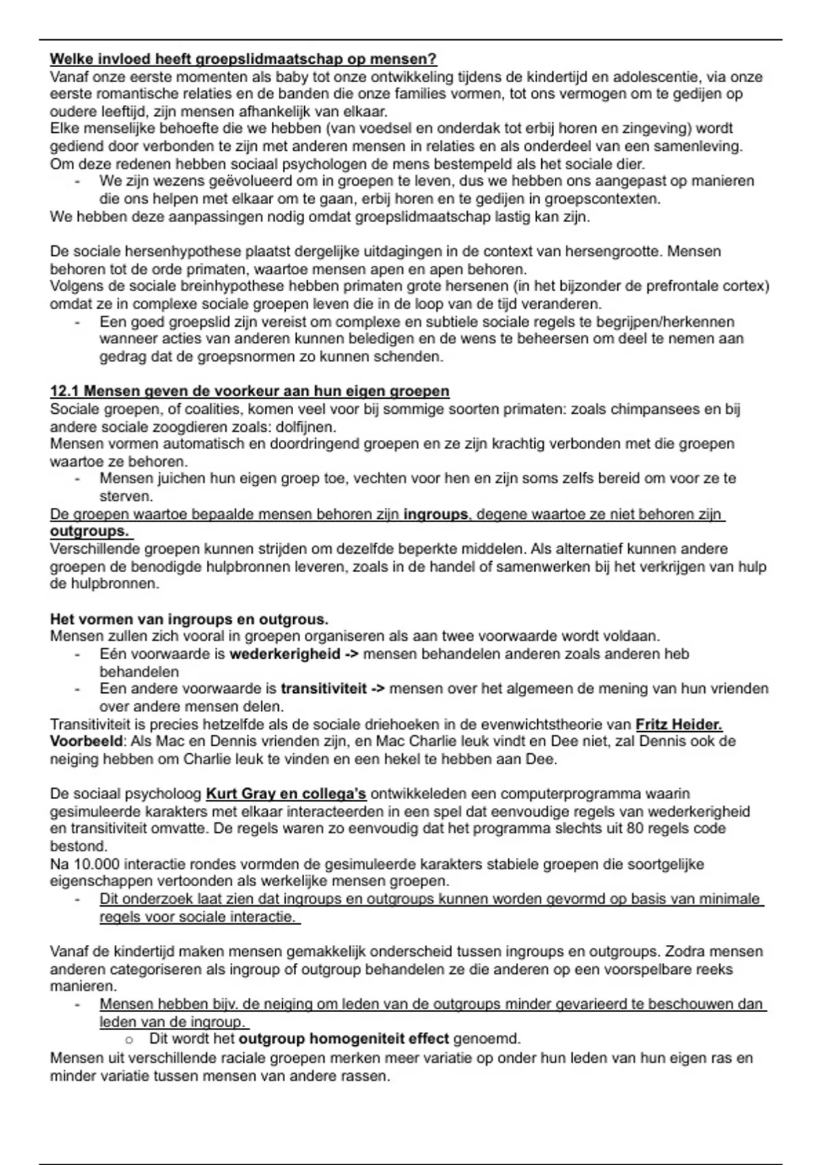 van de outgroup. -> Mensen geven een voorkeursbehandeling aan ingroup leden (bijv. hen meer gunsten