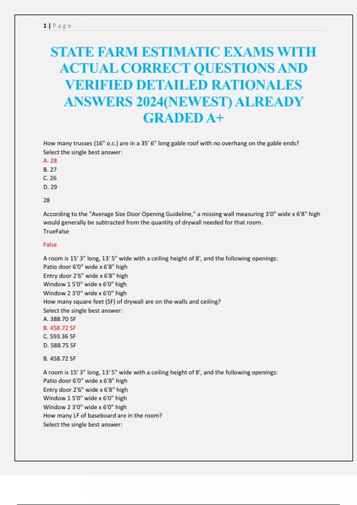STATE FARM ESTIMATIC EXAMS WITH ACTUAL CORRECT QUESTIONS AND VERIFIED DETAILED RATIONALES ANSWERS 2024(NEWEST) ALREADY GRADED A+