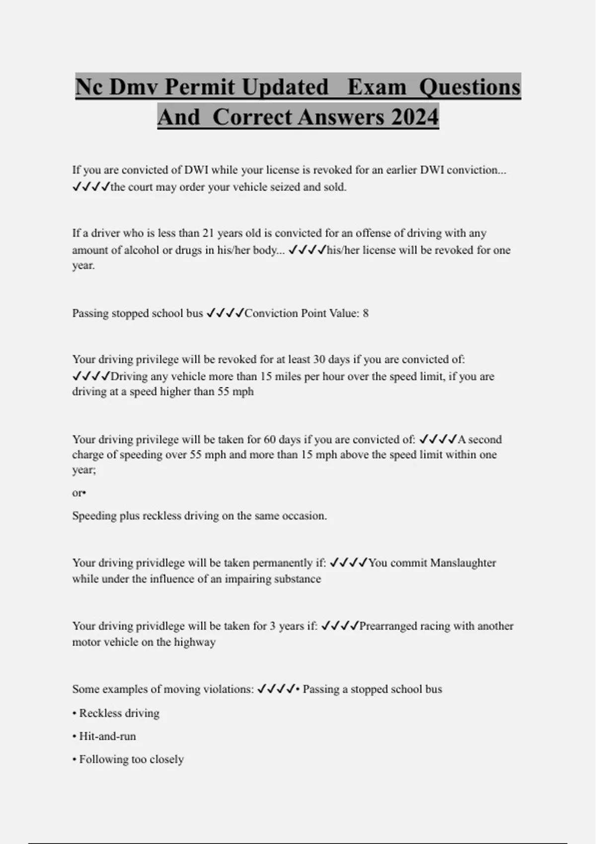 Nc Dmv Permit Updated Exam Questions And Correct Answers 2024