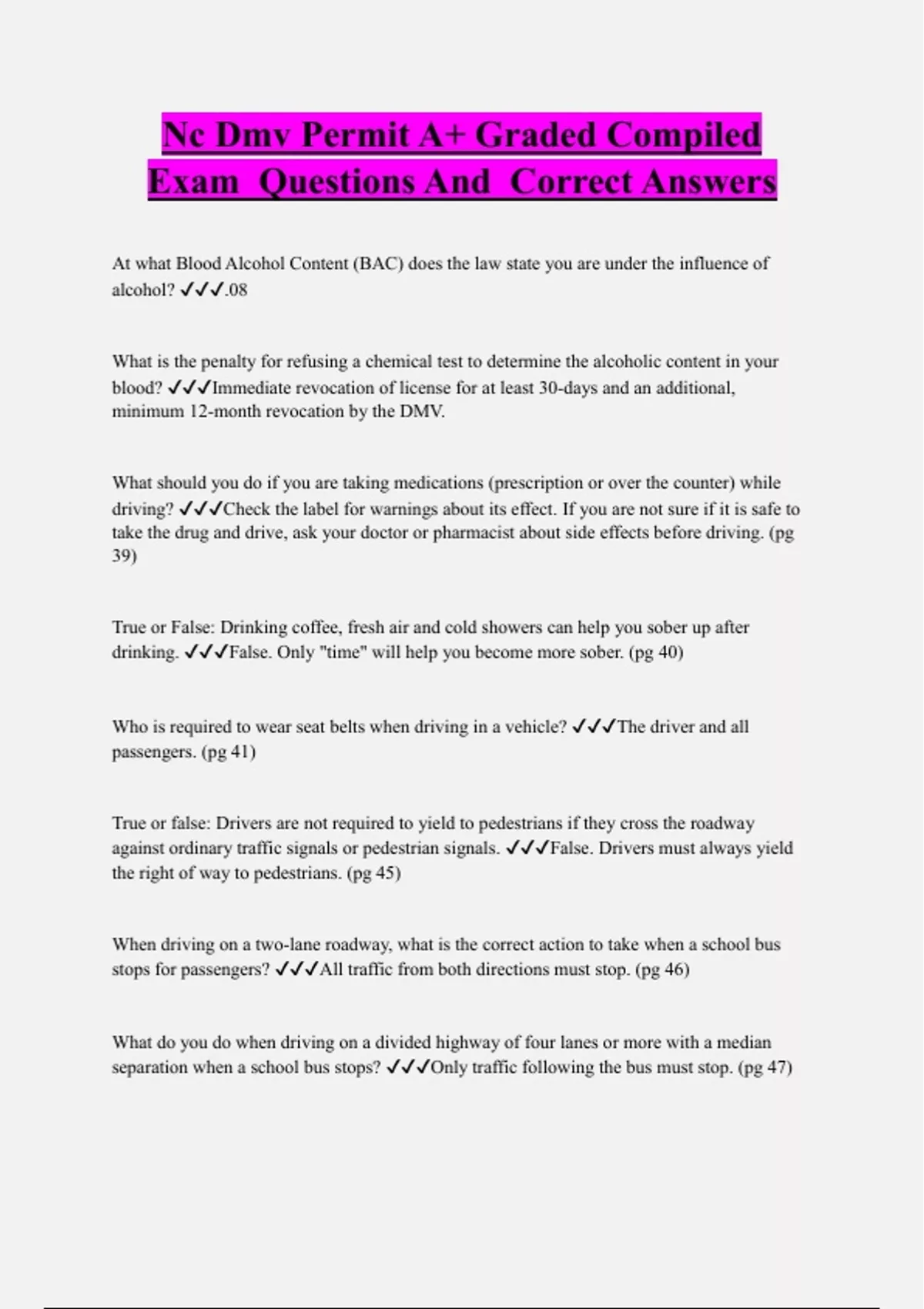Nc Dmv Permit A+ Graded Compiled Exam Questions And Correct Answers