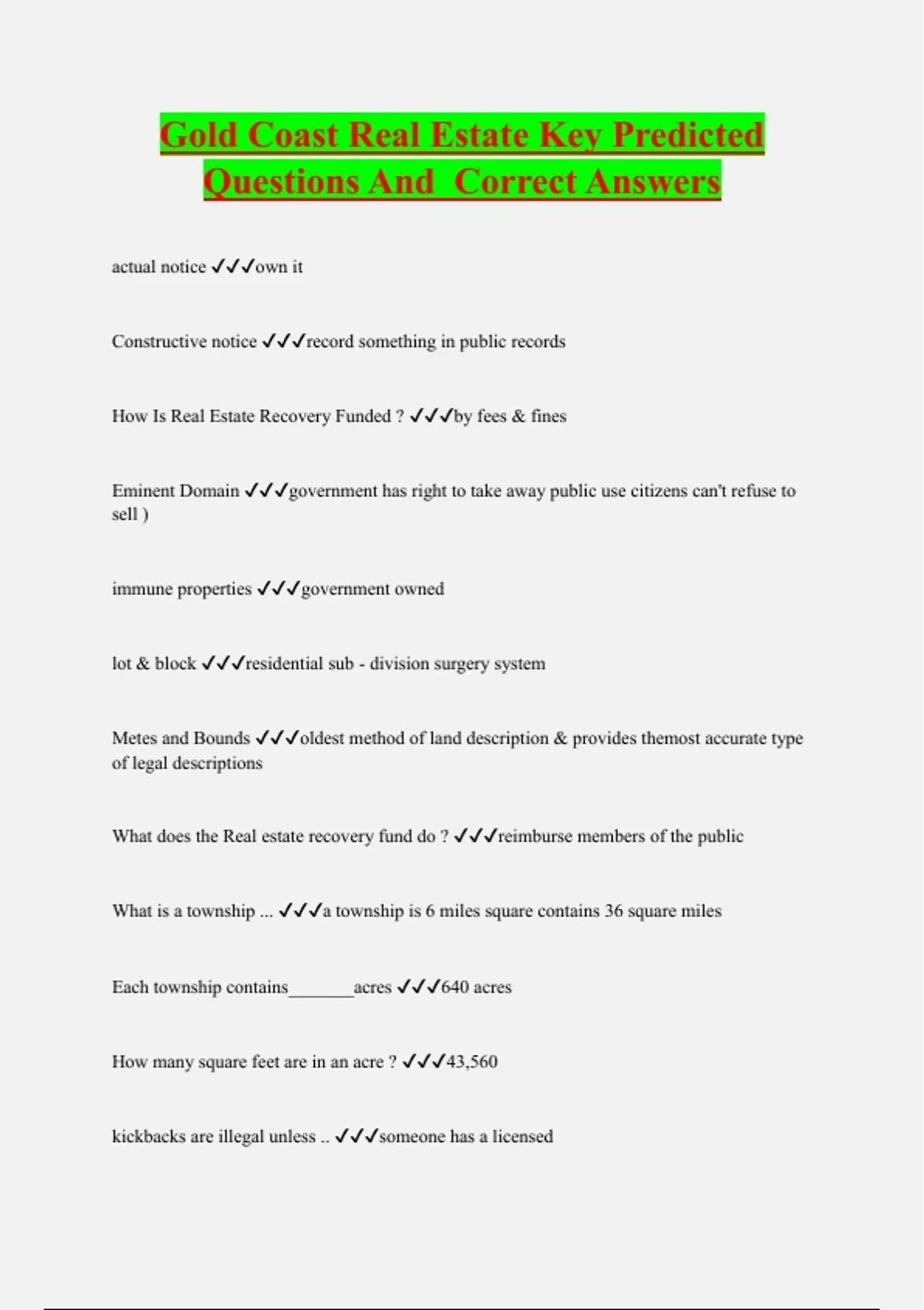 Gold Coast Real Estate Key Predicted Questions And Correct Answers