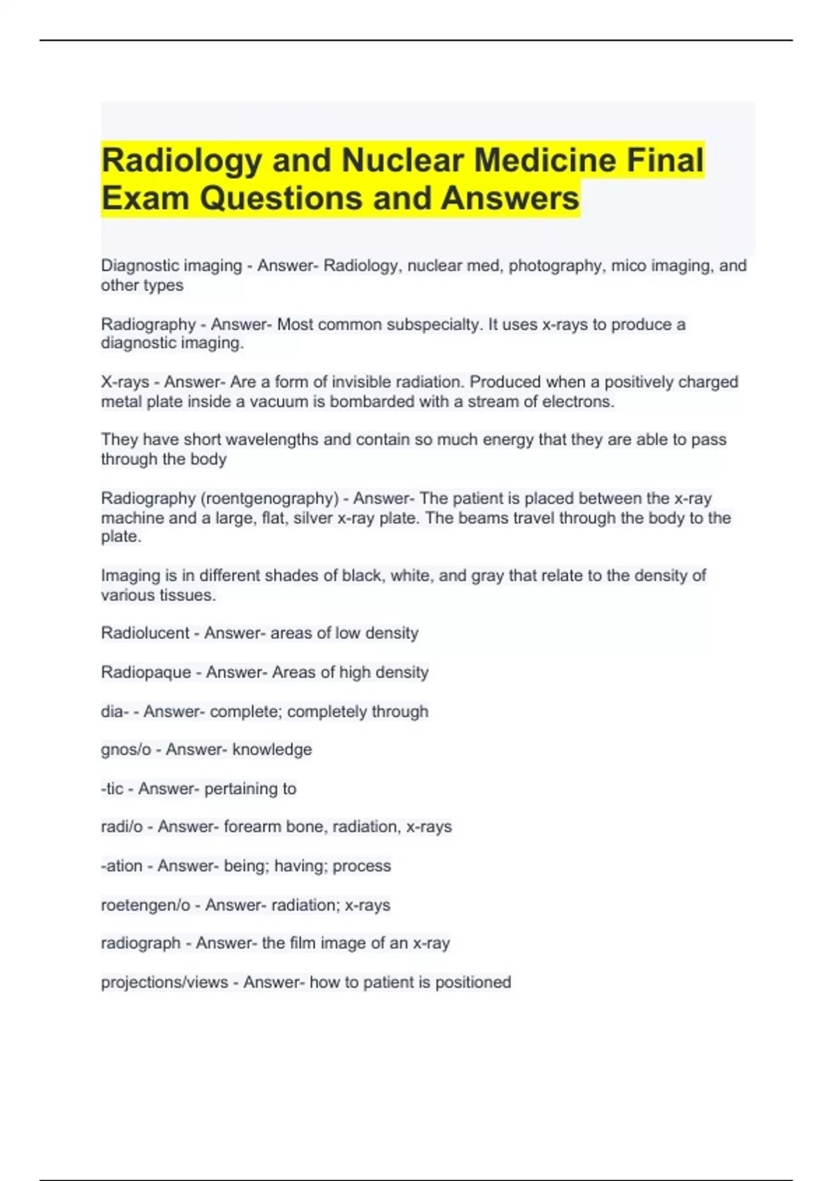Radiology and Nuclear Medicine Final Exam Questions and Answers